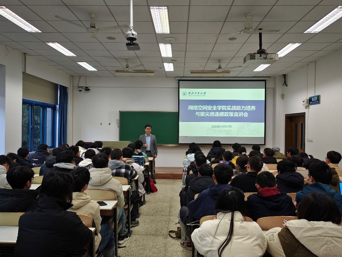 会上宣讲了网安拔尖班的选拔办法、考核机制、动态管理模式等。拔尖班实施动态管理制度,每年进行人员调整,实行优胜劣汰,以保持拔尖班的活力与培养质量。在培养方案方面,拔尖班突出“实战导向、创新驱动、高阶要求”的特色,不仅课程设置兼顾前沿性与高阶性,还注重实战创新能力培育,并将引入企业师资、搭建校际交流平台,全力拓展学生学术视野与综合素养。偷拍性爱致力于培养具备卓越实战对抗能力和系统创新能力的“总师型”网安高素质专业人才。拔尖班是一块实验田,帮助偷拍性爱探索与培养目标相匹配的培养体系。