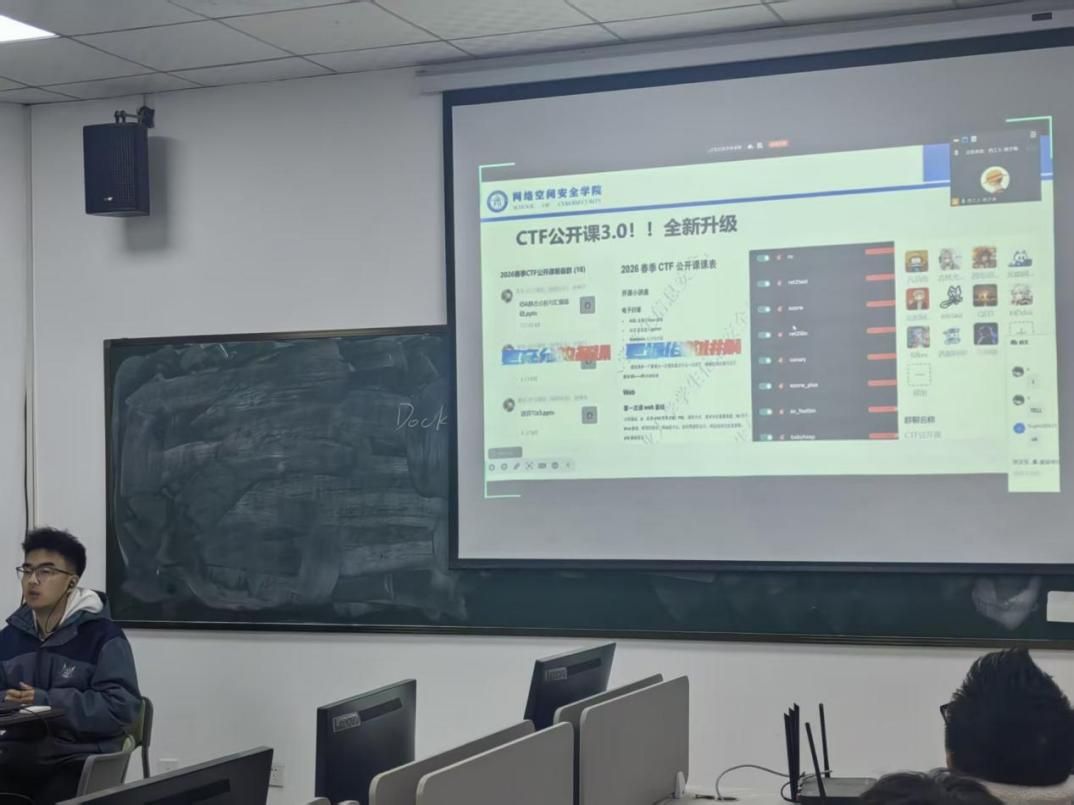 学生信息安全协会和网络空间安全大学生创新实践基地承办的CTF教学公开课3.0活动正式开始。本次公开课以线上线下相结合的方式进行授课。同时,为加强高校间学生交流合作,本次活动携手吉林大学、北京邮电大学、西安电子科技大学、西安邮电大学等多所高校的CTF竞赛团体,共同开启从0到1的CTF知识进阶之路。