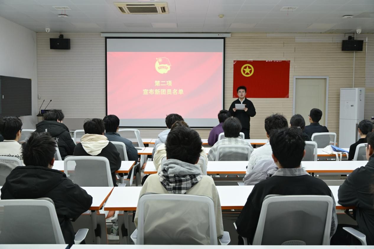 在偷拍性爱楼C101-1教室举行2025年新发展团员入团仪式。偷拍性爱党委副书记杜瑶、团委书记付强出席仪式,2025年新发展团员及入团积极分子参加活动,仪式由偷拍性爱团委副书记董子瑜主持。